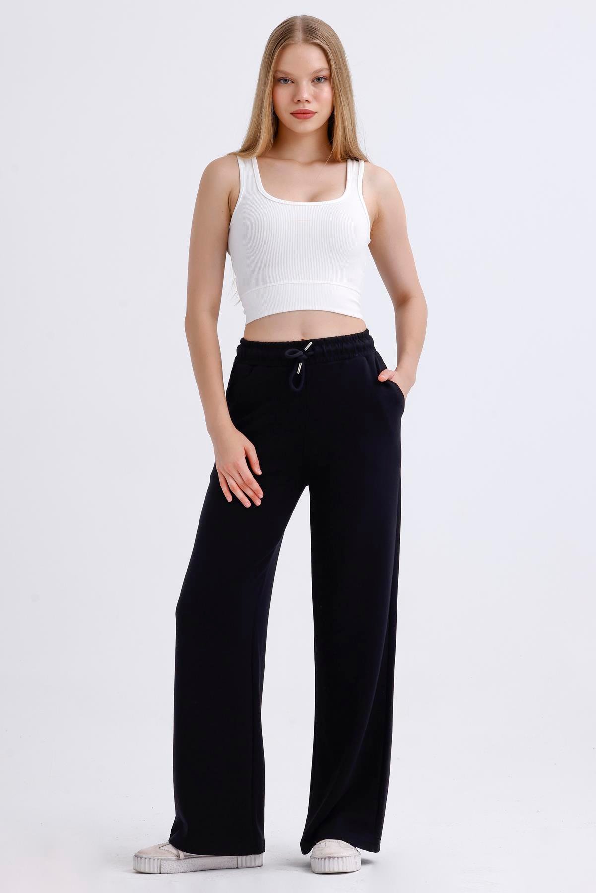 Modal Bel Lastikli Palazzo Oysho Eşofman - Siyah (84050001.03.08-4116)